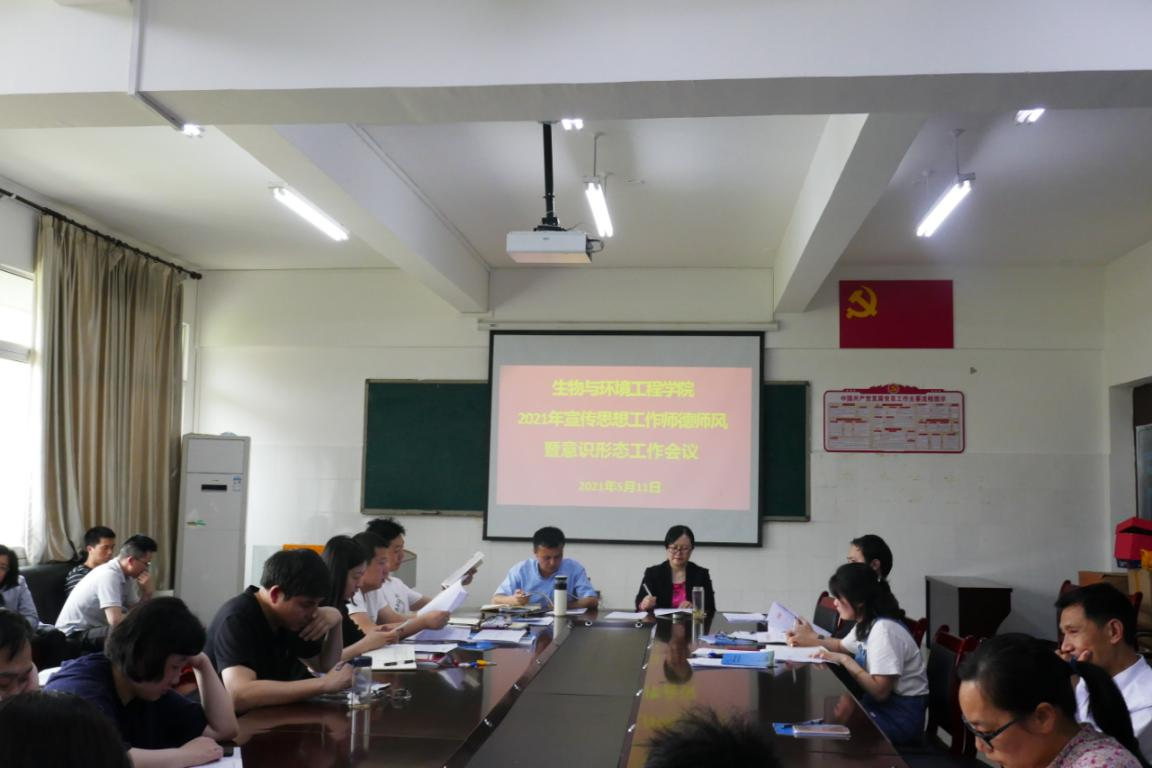 2021年5月11日中午,英国上市公司365在实验楼A307会议室召开2021年宣传思想工作师德师风暨意识形态工作会议。会议由生物与环境工程公司党委书记唐运前主持,全院教职工参加会议。