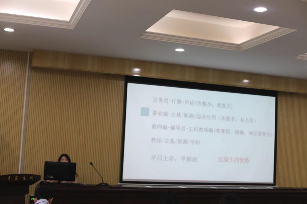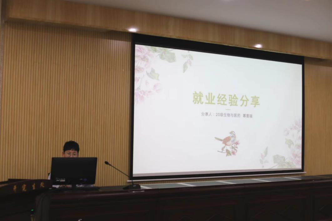 交流会中,成功考博的严毅师兄首先详细的讲解了他考博的整个过程,并介绍了他读博期间的科研工作情况以及学术成果。成功考编的许应芬师姐以及成功就业的慕雪瑞师姐和宋佳慧师姐,分别就对于报考公务员、事业编以及就业方面进行详细的讲解。