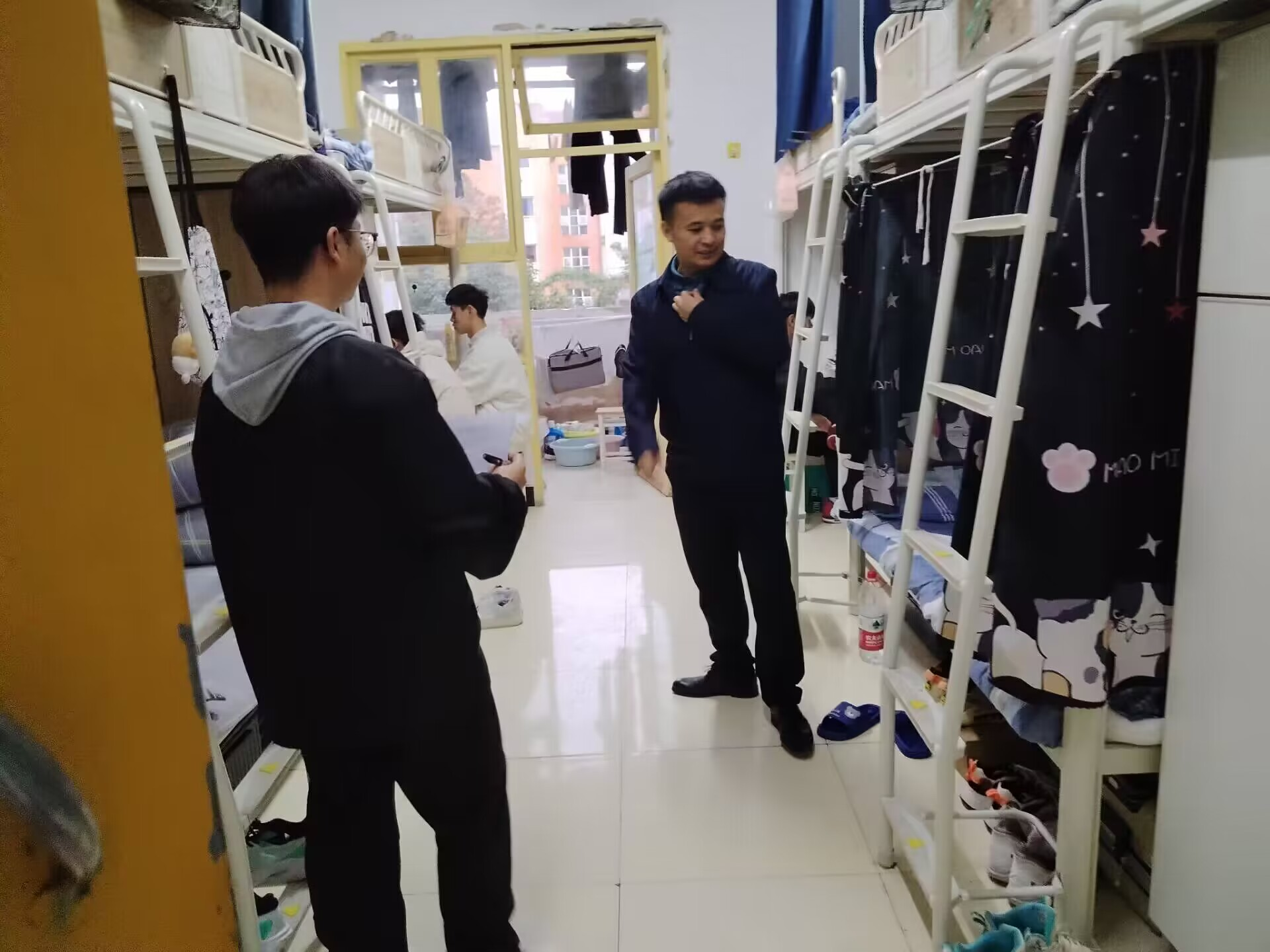 在新生宿舍,公司领导详细了解了员工学习、生活及寝室关系相处等情况,提醒员工做好防寒保暖,防诈骗、寝室防火、冬季防一氧化碳中毒等,鼓励同学们适应新环境,做好复习准备。