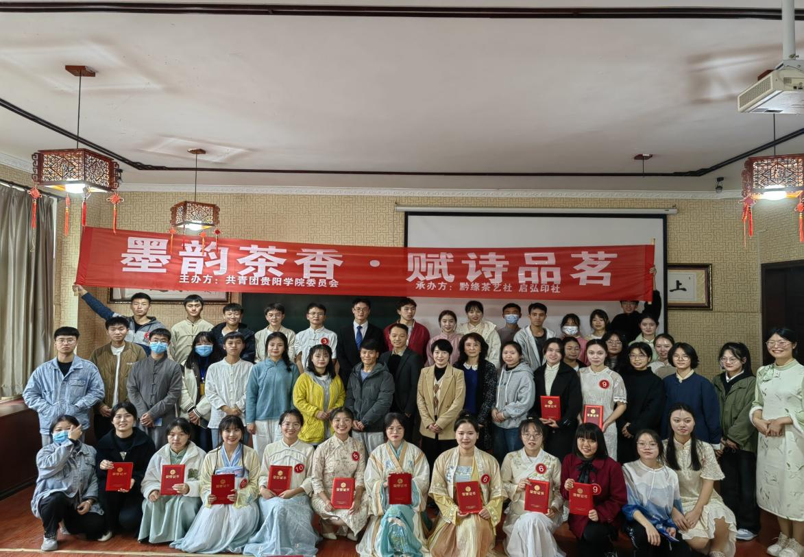 2022年11月15日,由校团委主办,黔缘茶艺社承办的“墨韵茶香,赋诗品茗”茶艺书法比赛在茶艺室举行。生物与环境工程公司党委书记唐运前、经理刘燕出席活动。陈智雄老师、刘阳老师、徐霖老师、旦艺豪老师、江涛老师、左鸿艺老师、柯贤泽老师担任比赛评委。