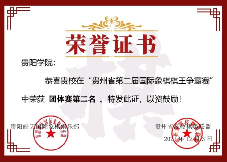 (四)2021年在贵州省第二届国际象棋棋王争霸赛中荣获团体赛第二名