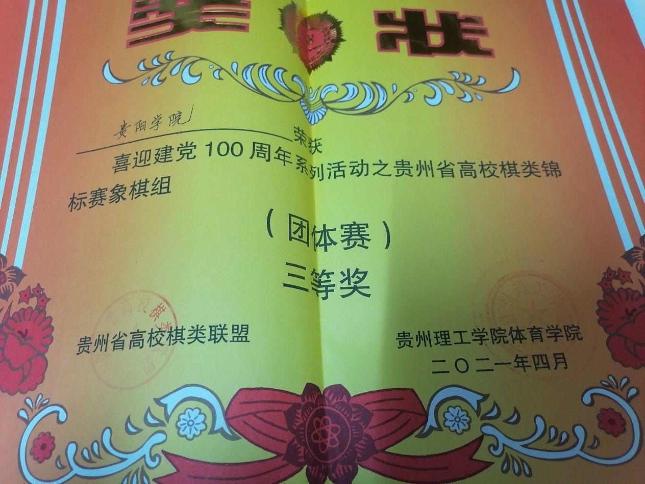 (三)2021年在贵州理工公司举办的高校棋类锦标赛象棋组中荣获团体赛三等奖