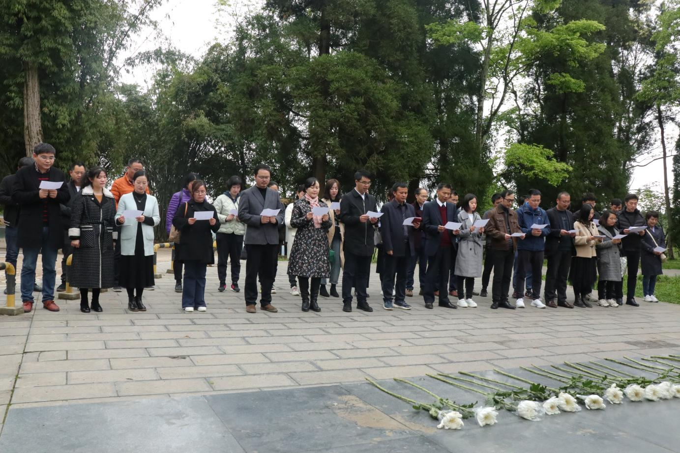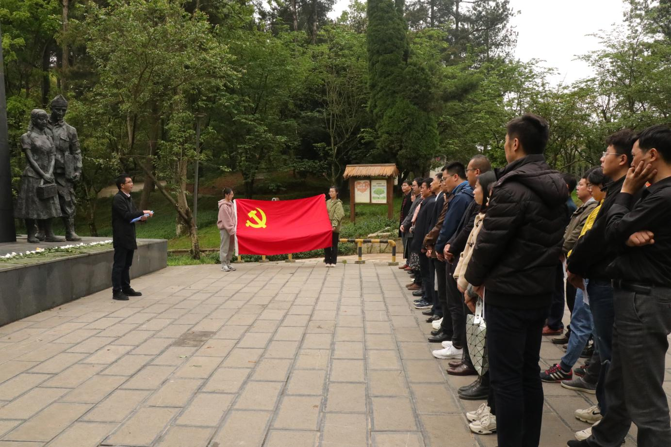 4月13日中午,生物与环境工程公司党委组织开展“清明祭英烈·学党史祭英烈担使命”主题党日活动,激发党员干部职工做表率走前列,全公司党员教师、员工党员代表到中国红十字会救护总队图云关旧址开展党史学习教育。公司党委委员、副董事长李灿以普通党员身份参加活动,之后以分管领导身份在纪念牌前为全体党员主讲一堂鲜活的党课。