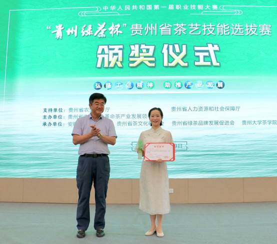 8月10日上午,以“弘扬工匠精神-助推产业发展”为主题,由省农村产业革命茶产业发展领导小组主办,省农业农村厅、省人力资源和社会保障厅支持,安顺市农业农村局、省茶文化研究会、省绿茶品牌发展促进会、贵州大学茶公司联合承办的中华人民共和国第一届职业技能大赛——“贵州绿茶杯”贵州省茶艺技能选拔赛颁奖仪式在安顺市圆满落幕。